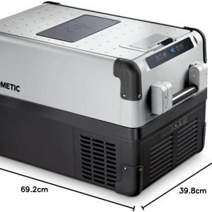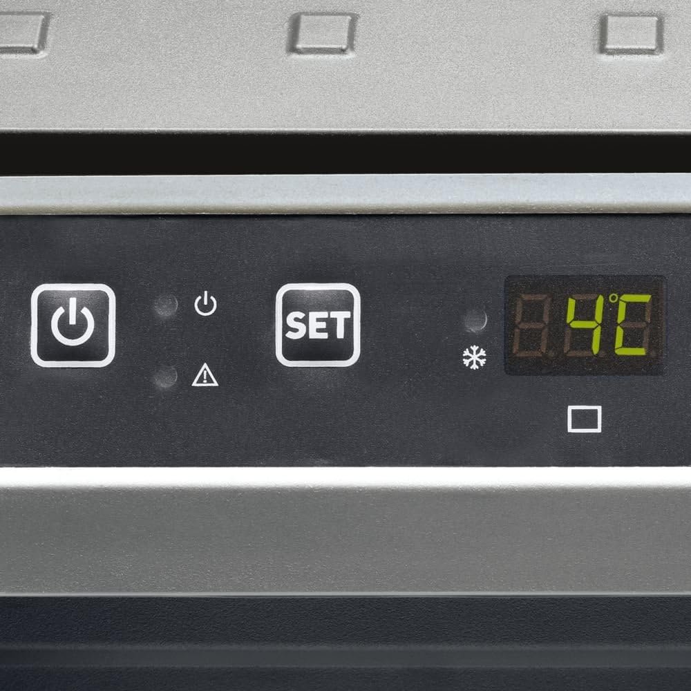 Dometic COOLFREEZE CFX 35W: Mini fridge for refreshment on the go. If you travel a lot, you will quickly appreciate the electric cool box from Dometic. The useful handles on the sides make it easy to carry. The CFX special electronics with digital temperature display allow an individually adjustable temperature from +10 to -22 ‘C. Even at high outdoor temperatures in the car, caravan, boat or garden, the internal temperature of the mobile e-cool box is maintained with a power consumption of 43 watts. Automatic turbo cooler and memory function keep your drinks and snacks wonderfully cool. The capacity is generously sized at 32 litres and 4.5 litres (fresh compartment). A removable lid makes it easy to clean and display the food. The power supply has a priority circuit for connecting to AC voltage via Schuko plug (AC) or via the cigarette lighter (DC). The fridge is small, compact and essential as an electric cool box in summer. Product features: Portable cooling and ice box with a large capacity of about 30 litres. Practical handles on the sides for easy transport. Connection via cigarette lighter or via Schuko plug (socket). Sound emission: quiet operating noise with 42 dB Dometic cool boxes are suitable for cars and other vehicles. Special features: Electronic thermostat with digital temperature display (in ‘C and ‘F). With turbo cooler and memory function. USB connection, via the a smartphone can be charged can be WLAN function corner caps to protect the cool box, drain plug, robust locking mechanism and hinges made of stainless steel, DC cable guide, removable wire basket, solar operation possible via solar panel (DCDC converter feeds battery with 12 volts). Note: In case of high humidity or very high temperature differences between the cool box and the ambient temperature, condensation formation may increase. The formation of condensation is additionally supported if the lid is opened frequently and for a long time. We recommend removing the condensation on a regular basis.