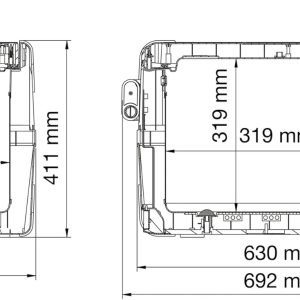 - 32 litre capacity. Robust, durable housing with corner reinforcements, stainless steel hinges and lid coating