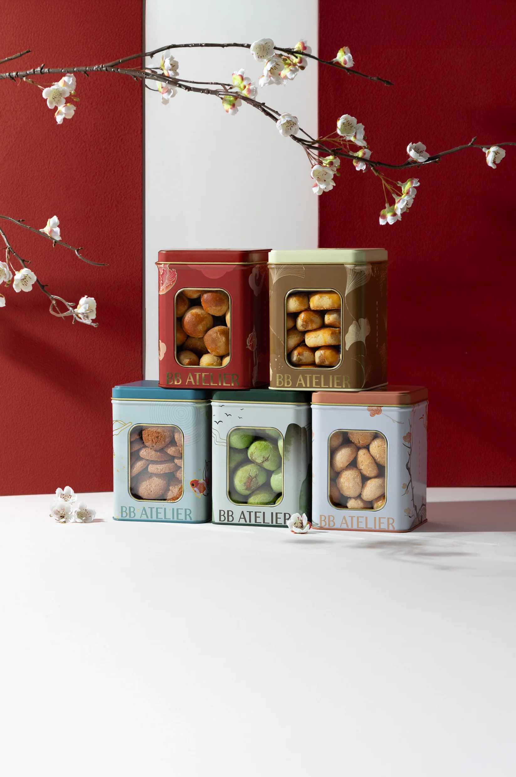 This exquisite set features the complete spectrum of our 2026 collection: the much-loved Original Ondeh Ondeh Tarts, classic Pineapple Pillows, indulgent Pineapple Bak Kwa Tarts, savoury-spiced Hae Bee Hiam Cookies, and the timeless Peanut Almond Cookies. A harmonious balance of sweet, savoury, and nostalgic flavours, each cookie is crafted to delight every generation.