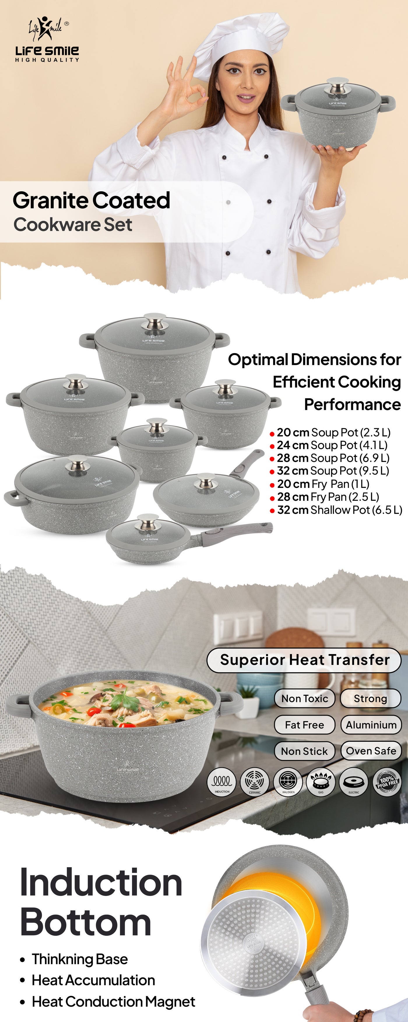 - EASY TO CLEAN: Granite Coated Cookware is very Easy to Clean. Hand Wash will mild soap and dry with cloth or towel.