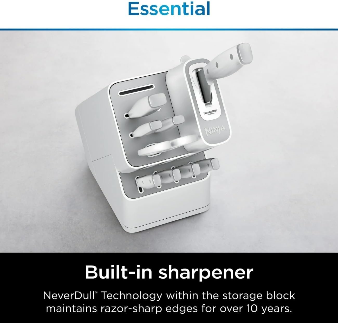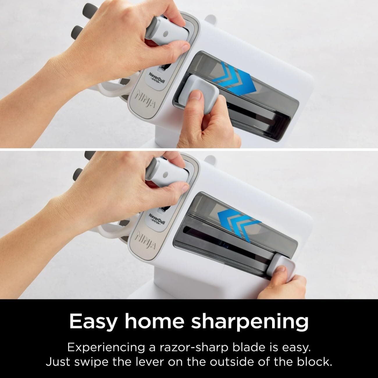 Ninja Foodi NeverDull Knife Set K12010, High Carbon Stainless Steel, Built-In Sharpener, Ergonomic Handle, Durable 10pc Kitchen Knife Block Set (White)