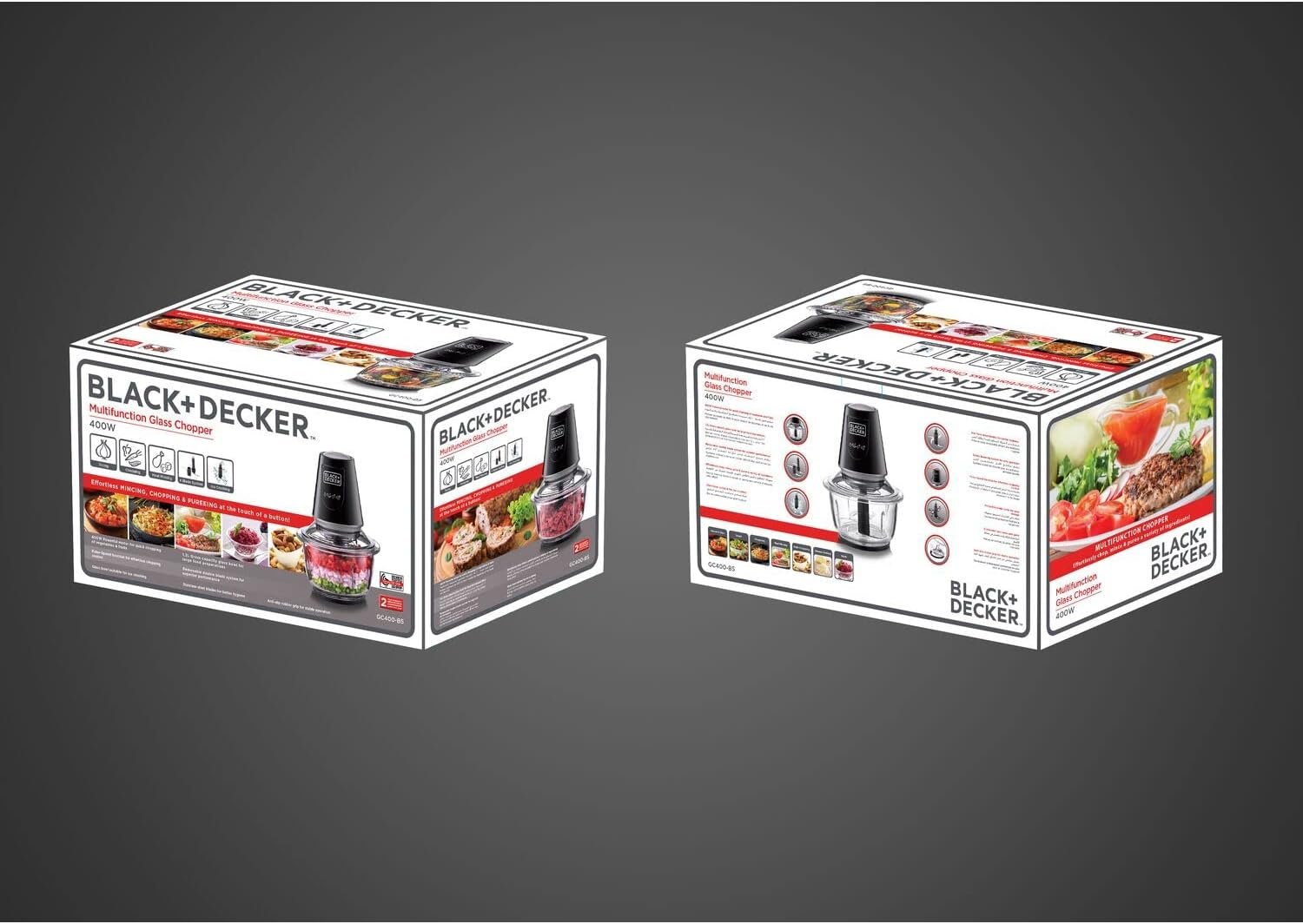 ⚡New Year Special🔥BLACK+DECKER Multi-Function Glass Chopper & Mincer, 400W, XXL 1.2L Bowl, 4-Blade System, Pulse Speed for Precision, Ice Crushing, Compact Sleek Black Design, Easy to Clean, Black – GC400-B5 – COURTS Singapore