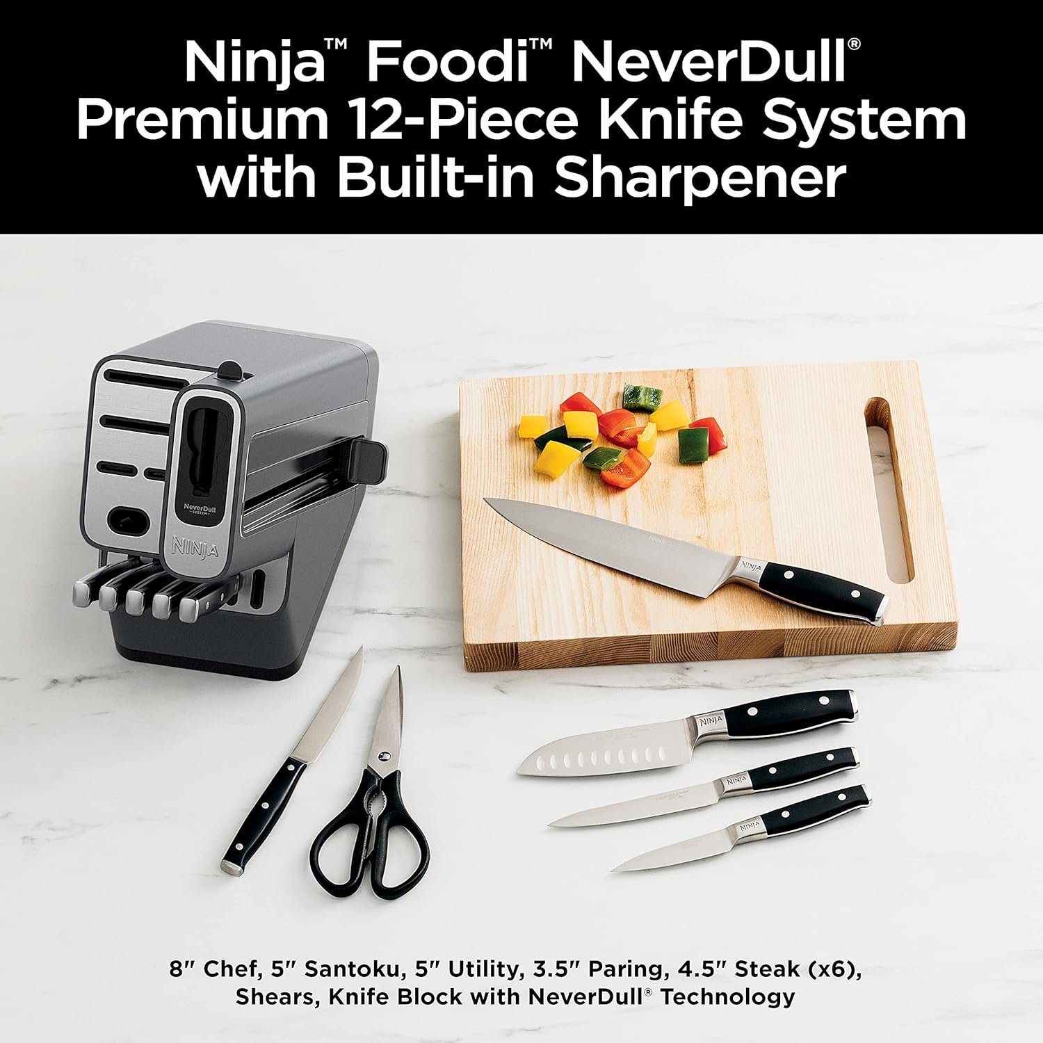 Ninja K32012 Foodi NeverDull Premium Knife System, 12 Piece Knife Block Set with Built-in Sharpener, German Stainless Steel Knives, Black – COURTS Singapore