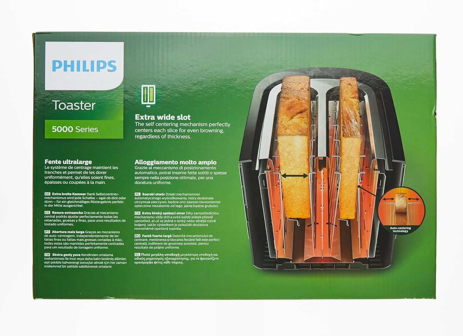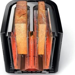 10% Wider slots size, together with the self-centering racks, regardless thin slices or thick hand-cut slices, it holds and locks each slice perfectly centered for even browning result*.