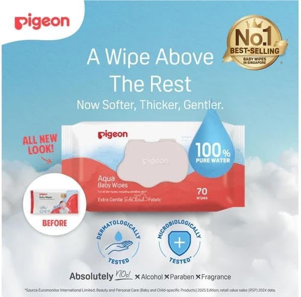 Pigeon Aqua Gentle Baby Wipes with Fliptop 70 sheets (Pack of 24) – COURTS Singapore