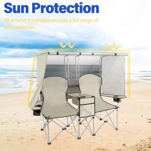 PLKO Portable Double Camping Chair with Canopy Shade,Heavy Duty Beach Chairs for Adults,Folding Beach Chair with Cooler Bag for Sports Backyard Fishing Outside – COURTS Singapore