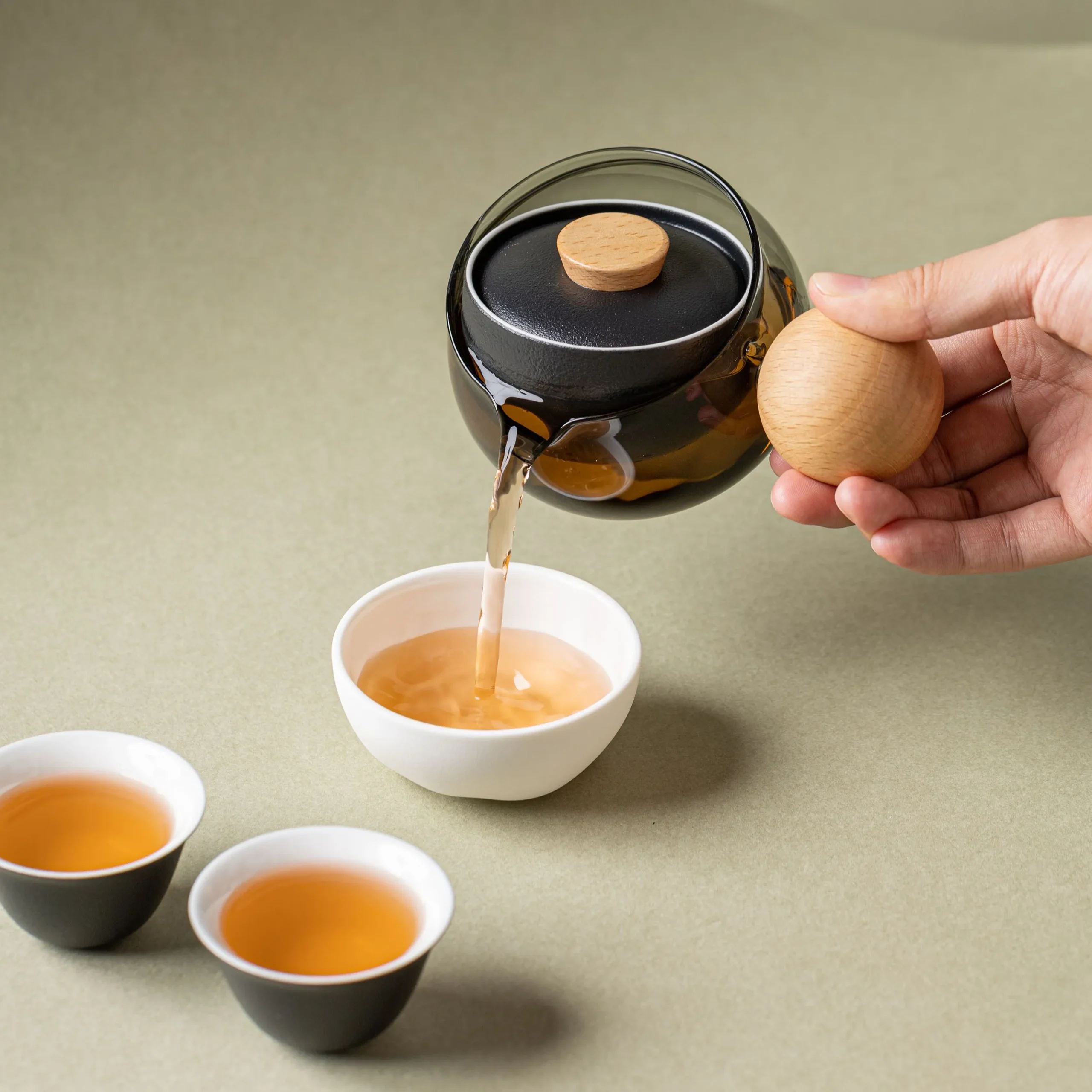 - High-grade borosilicate glass, Porcelain, Beechwood