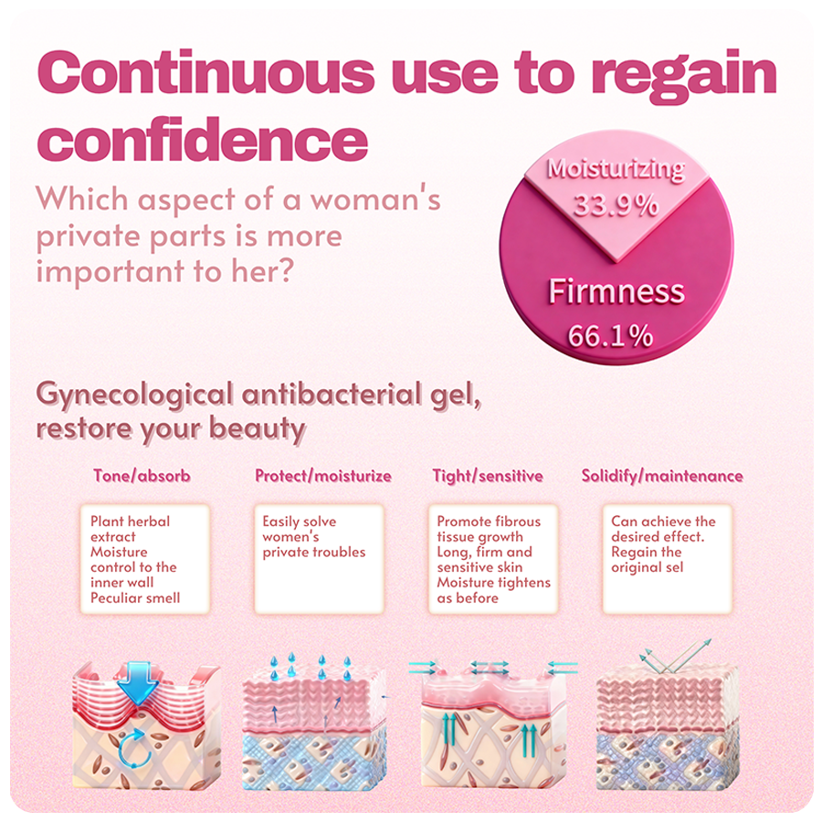 66.1% of women prioritize Intimate Firmness, and 33.9% prioritize Moisturizing. NiceRose Gel meets both core demands simultaneously.