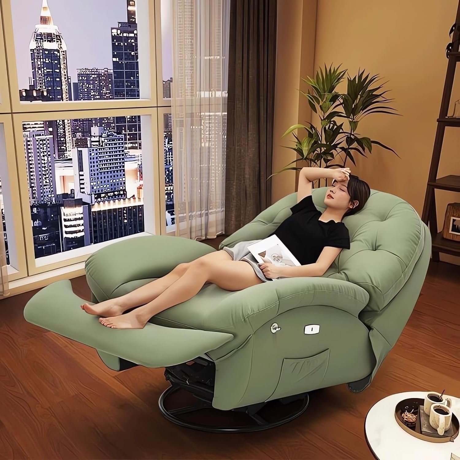 - Two modes for you to choose: manual mode – easily pull the sofa footrest open, and the sofa back moves back with the body; electric mode – adjust to any angle with one button, and comes with a USB charging port.